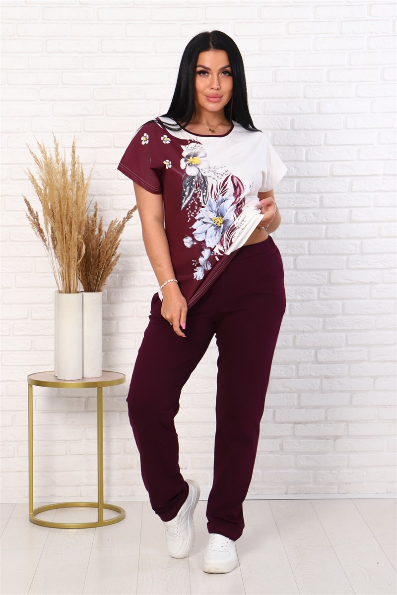 Женский костюм с брюками - идеальный вариант как домашней одежды, костюма для прогулок и путешествий, но так же и как пижама для сна. Для пошива используется ткань со 100% содержанием хлопка. Идеальное лекало костюма позволит подчеркнуть все достоинства фигуры, в то же время модель не сковывают движений и позволяет чувствовать себя комфортно в любых условиях. Особую изюминку изделию придает эффектный дизайн в виде сочетания двух контрастных друг к другу цветов, место стыка которых декорировано изображением прекрасного букета. Так приятно в конце рабочего дня сменить повседневный офисный костюм на такую мягкую и приятную трикотажную одежду!