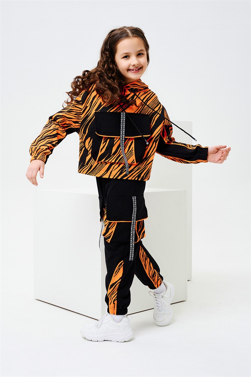 Модный детский спортивный комплект имеет интересный крой и сочетание цветов. Костюм двойка представлен в ярких цветах, создан для детей младшего и школьного возраста, который будет удобен в любом виде спорта, в путешествии и ежедневной носке. Толстовка свободного кроя с длинными двухцветными рукавами на резинке, дополнена объёмным капюшоном со шнурком, также есть большой нагрудный карман с клапаном и интересным модным декором в виде ленты с надписью. Штаны(джоггеры) свободного кроя на эластичном поясе, с большими накладными карманами с клапанами по бокам, также с декором в виде ленты с надписью, низки брюк собраны на эластичную широкую резинку. Дизайн костюма дополнен ярким неоновым кантом из кашкорсе. Рекомендована деликатная стирка не выше 30 градусов.