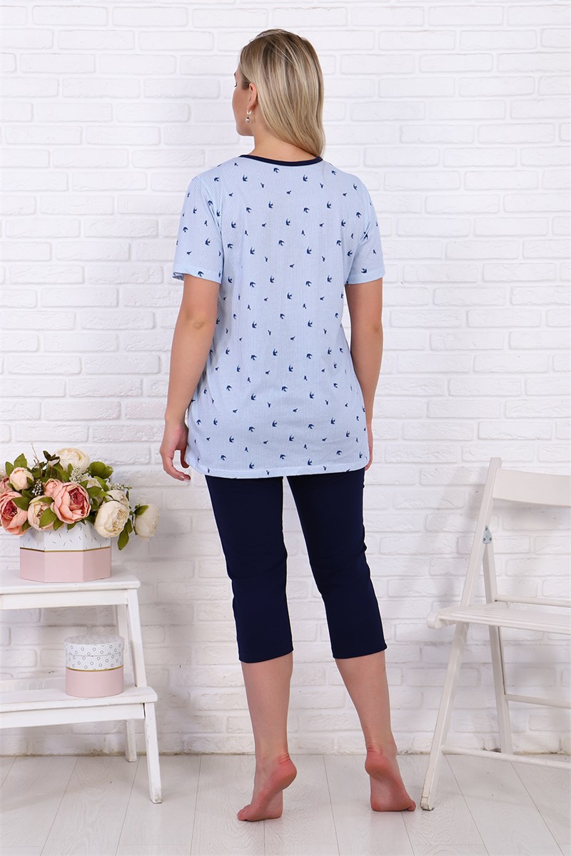 Женский костюм из кулирки футболка + бриджи. Футболка из набивной ткани с цветами, короткие рукава с манжетами, бриджи из однотонной ткани с карманами