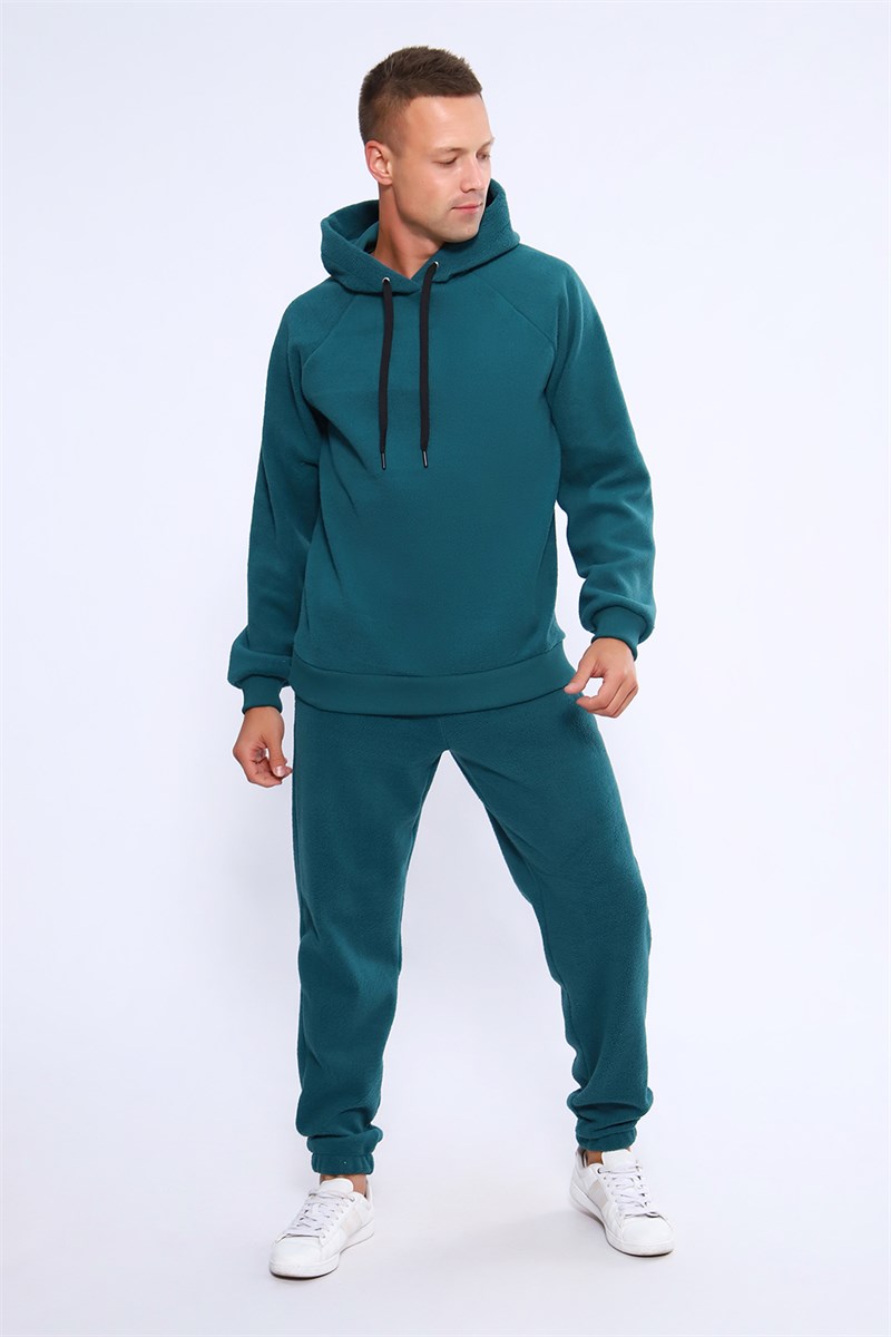 Уютный мужской костюм двойка, среднего объема, из ультра мягкого, нежного с легким сатиновым отливом интерсофта в виде барашка. Изнаночная сторона ткани гладкая, без начеса, что не даст лишнего объема. Представленный комплект, состоит их толстовки и брюк на резинке. Толстовка с рукавом - реглан, самый подходящий вариант на любой окат плеча. Толстовка с капюшоном который имеет кулису со вставленным внутрь шнурком контрастного цвета. В зависимости от партии цвет шнурка может меняться. Капюшон вшит в горловину с небольшим нахлестом по центру горловины. По низу изделия и рукавов пришито кашкорсе в цвет. Брюки прямые среднего объема, с боковыми карманами, низ обработан в подгибку на резинке. Пояс эластичный и отстрочен на специальной поясной машине. Этот костюм отлично подойдет как для дома, так и для прогулок, отдыха на природе и для занятия спортом. Приятные тактильные свойства ткани будут вызывать у вас самые положительные эмоции. На фото модель представлена в 48 размере.