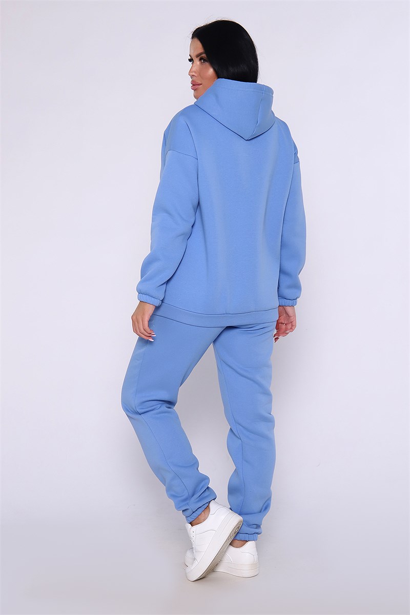 Теплый костюм выполнен из футера 3-х нитки с начесом с содержанием хлопка премиум качества. Костюм состоит из объёмной толстовки в стиле оверсайз с накладными карманами и джогеров. Низ брюк и рукавов на толстовке обработан резинкой. Пояс брюк на резинке, для удобства по бокам расположены прорезные карманы. Перед использованием желательно постирать костюм при 30 градусах, тогда излишний ворс примнется.