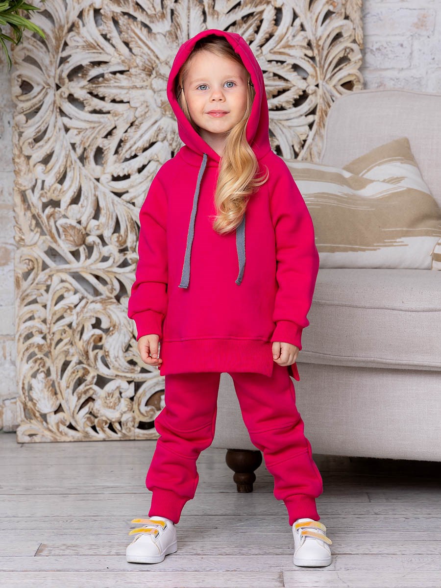 Костюм Сью для девочки, предназначен для носки в прохладных помещениях и прогулки на улице, выполнен из плотного футера с начёсом. Толстовка на поясе, с капюшоном на шнурке, рукава-реглан на манжетах. Разрезы в боковых швах по нижней части толстовки придают модели особую оригинальность. Штанишки на манжетах, пояс на резинке, декоративная отстрочка в области колен. В таком костюме ребёнок будет чувствовать себя комфортно, уютно и всегда будет в центре внимания!