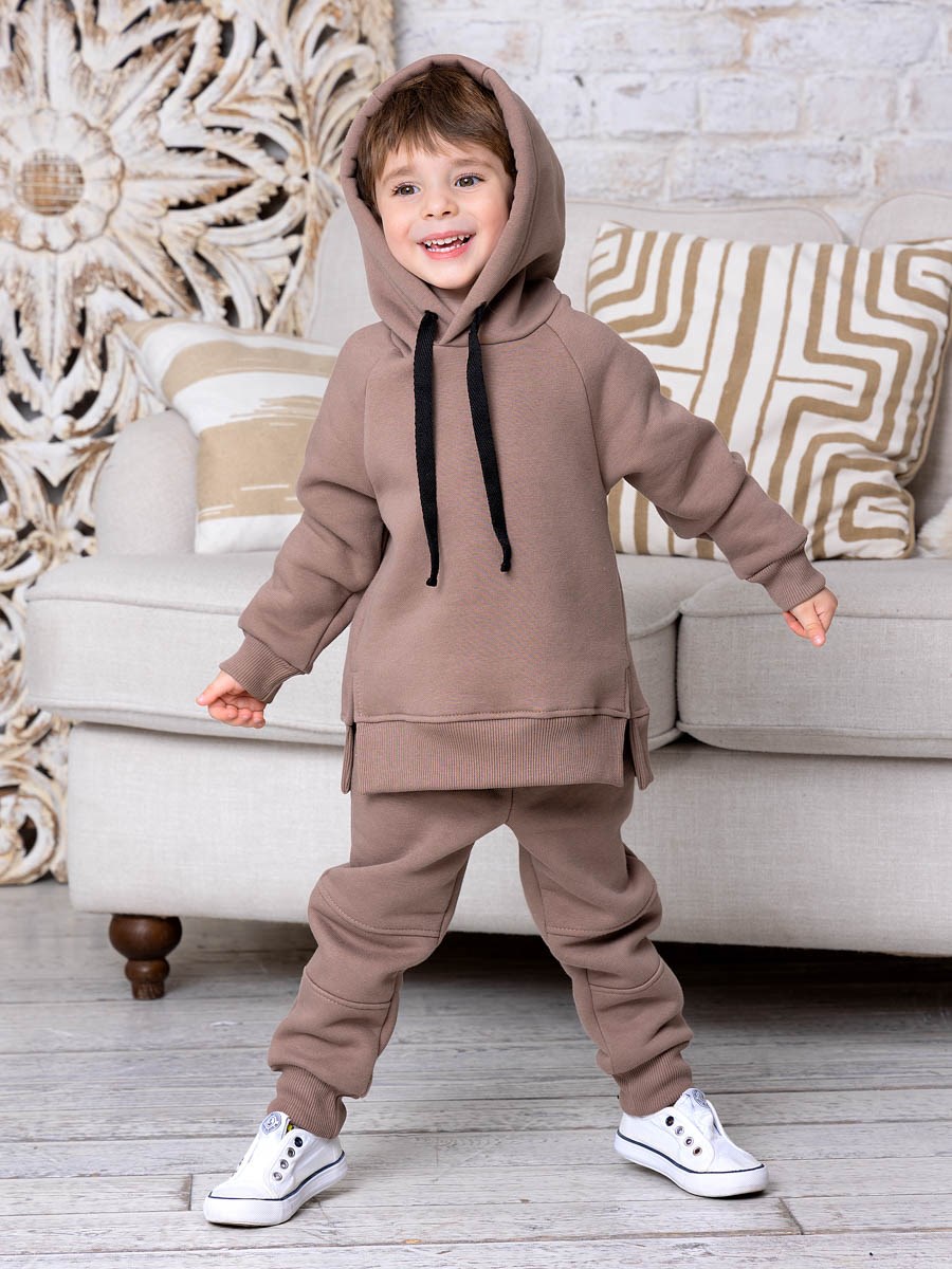 Костюм Тим для мальчика, предназначен для носки в прохладных помещениях и прогулки на улице, выполнен из плотного футера с начёсом. Толстовка на поясе, с капюшоном на шнурке, рукава-реглан на манжетах. Разрезы в боковых швах по нижней части толстовки придают модели особую оригинальность. Штанишки на манжетах, пояс на резинке, декоративная отстрочка в области колен. В таком костюме ребёнок будет чувствовать себя комфортно, уютно и всегда будет в центре внимания!