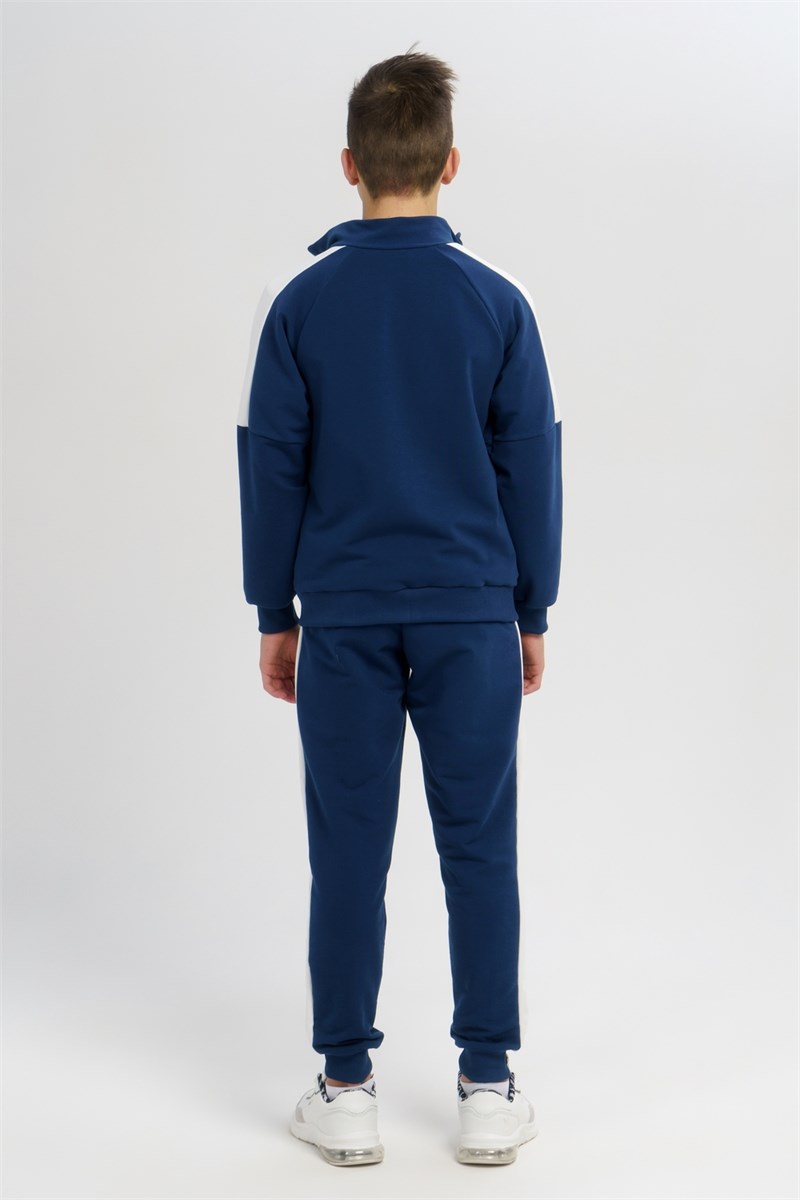 Костюм двойка из футера 2-х нитки качество пенье. Состоит из олимпийки с карманами и манжетами на рукавах и брюк без карманов. Крой свободный. Олимпийка и спортивные брюки декорированы контрастными лампасами по низу изделия манжеты. Олимпийку дополняет принт.