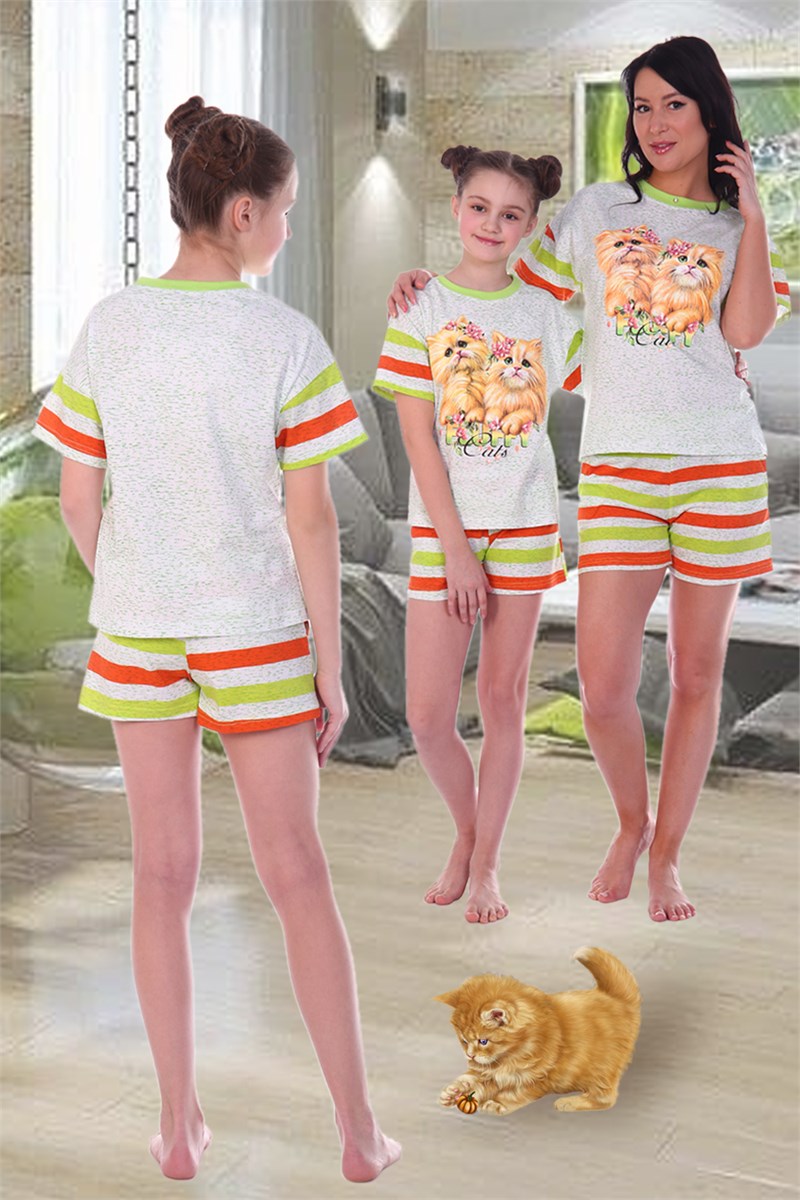 Домашний костюмчик с забавными рыжими котятами. Футболка свободного кроя, спущенная пройма. Шорты на широкой резинке с боковыми карманами.
