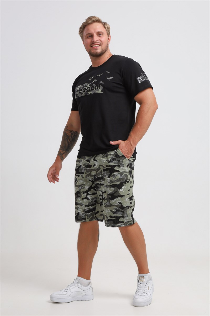 Moses. Мужской костюм выполнен из натуральной ткани 100% хлопка. Модель для повседневной, домашней носки, состоящая из шорт и легкой, свободной футболки, с коротким рукавом. Комплект костюма состоит из широкого размерного ряда, шорты имеют 2 боковых кармана, также эластичный пояс. Наш костюм выполнен так, что при носке он не будет сковывать Ваши движения, а только дарить наслаждение.