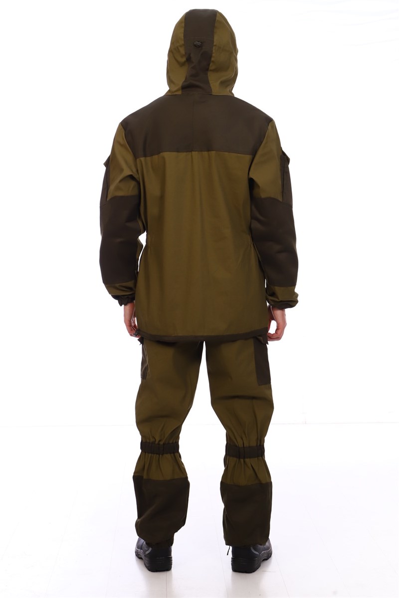 Костюм горка летний мужской для активного отдыха из ткани палатка. Чтобы в спец. костюме было комфортно, его ткань плотная палатка обладает влагоотталкивающими и ветрозащитными свойствами. Летний костюм для охоты и рыбалки состоит из куртки и брюк. Куртка прямого кроя, с супатной бортовой застежкой на пуговицы и капюшоном пристегивающимся на пуговицы. На полочках наклонные прорезные карманы с клапаном застегиваются на пуговицы. По линии талии расположена кулиса, собранная на эластичную ленту. Рукава с налокотниками, над которыми расположены накладные карманы с клапанами фиксирующиеся на контактную ленту, с манжетами. Карман на внутренней подкладке левой полочки. Брюки с поясом на эластичной тесьме, застегиваются на пуговицы с супатной застежкой гульфика. Бретели на резинке крепятся к брюкам на пуговицы. По линии колена кулиски стянутые эластичной тесьмой, по бокам в области колена накладные карманы с клапанами, застегивающиеся на пуговицу. Спецодежда комфортна в эксплуатации, благодаря правильной посадке по телу и подходит для людей высокого роста. Горка костюм - это тактический военный комплект универсальный подарок мужчине на любой праздник. Охотничий костюм рыболовный защитного зеленого цвета маскхалат позволит слиться с природой. Горка - отличный вариант спортивной одежды для активного отдыха рыбалки и охоты. Костюм туристический - это еще и универсальный подарок мужчине на любой праздник - Новый Год, 23 Февраля.