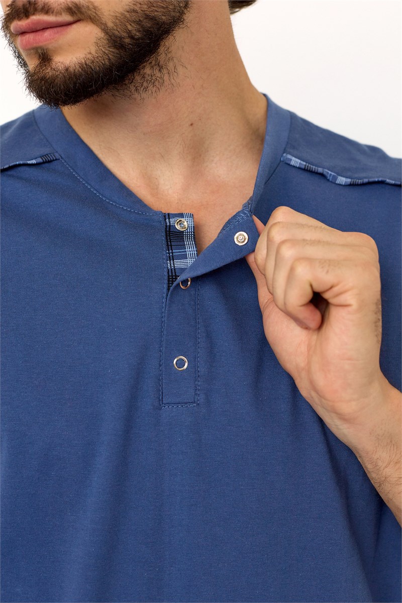 Классический домашний комплект мужской от бренда Lika Dress - идеальный вариант для отдыха, для сна и других домашних активностей. На футболке есть кнопки, которые облегчают надевание и выглядят стильно и современно. Мягкое трикотажное полотно домашней пижамы обеспечит комфорт и свободу движений. Одежда подходит для ночного сна и дневного отдыха. Ношение такого натурального комплекта действует успокаивающе на нервную систему. Низ изделия с ярким и небанальным, немарким принтом делает этот костюм еще более привлекательным. Брючки с удобной посадкой на вшитой резинке и с глубокими карманами. Свободная футболка имеет оригинальный рисунок.