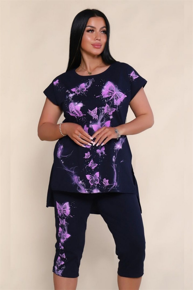 Женский костюм с бриджами из лёгкого и приятного на ощупь материала это идеальный выбор для тех, кто ценит комфорт и стиль. Состав 100% хлопок с использованием кулирной глади, что гарантирует отличную воздухопроницаемость и позволяет коже дышать даже в тёплую погоду.