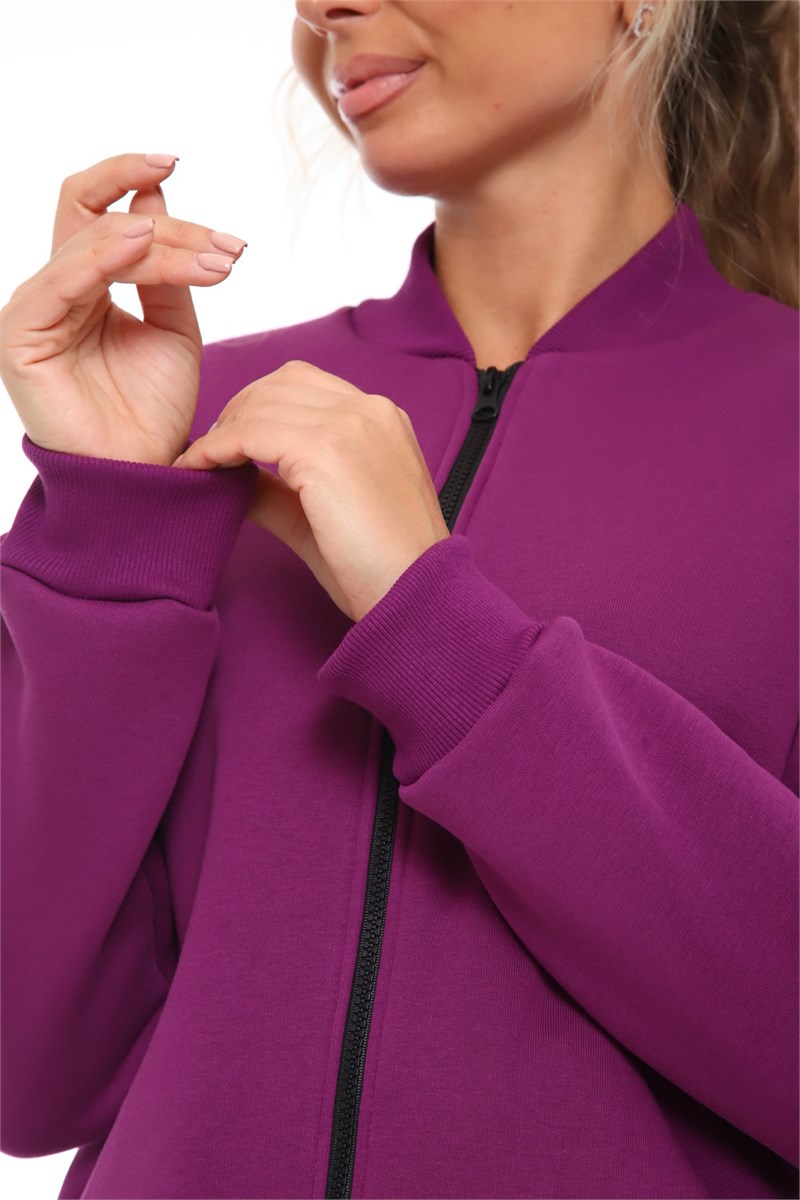 Кофта на молнии без капюшона обеспечивает удобство и свободу движений, а также позволяет регулировать температуру во время тренировок или прогулок. Элегантный дизайн и современный силуэт делают её универсальным предметом гардероба.