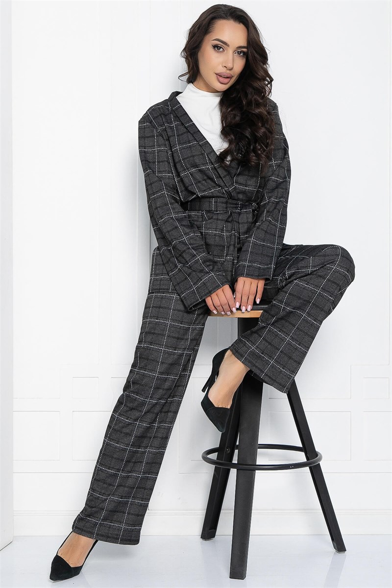 Модный женский костюм в клетку - это сочетание стиля и комфорта. Удлинённый пиджак идеально подходит для повседневных образов, а также может использоваться в качестве элемента делового стиля. Крой оверсайз придает ему неповторимый шарм, позволяя легко комбинировать с различными элементами гардероба. Брюки-палаццо свободно и красиво садятся на любой фигуре, скрывая ее недостатки. Благодаря широкому и эластичному поясу женские брюки комфортно сидят на талии. Свободные брюки прекрасно смотрятся на девушках и женщинах любого роста и типа фигуры.
