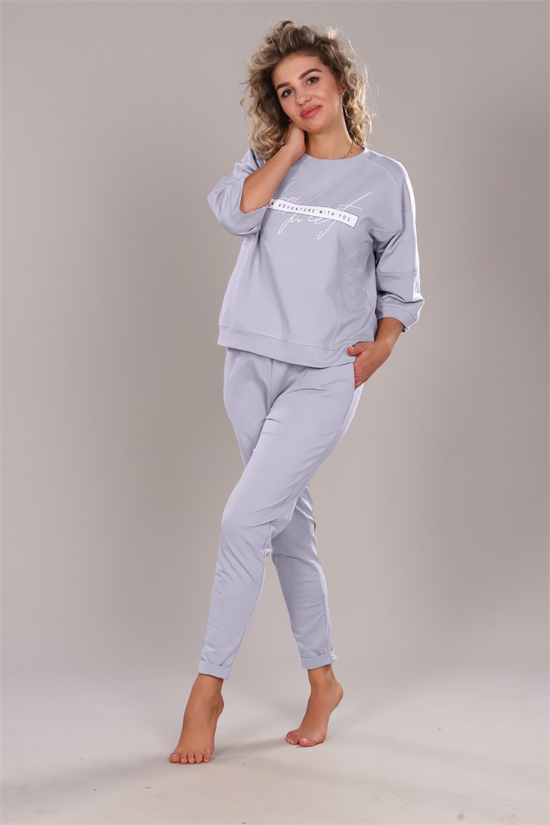 Костюм женский с зауженными брюками с подворотами, на резинке и свободной кофтой с рукавами 3/4. Модель выполнена из футера 2-х нитки (петля - хлопок)