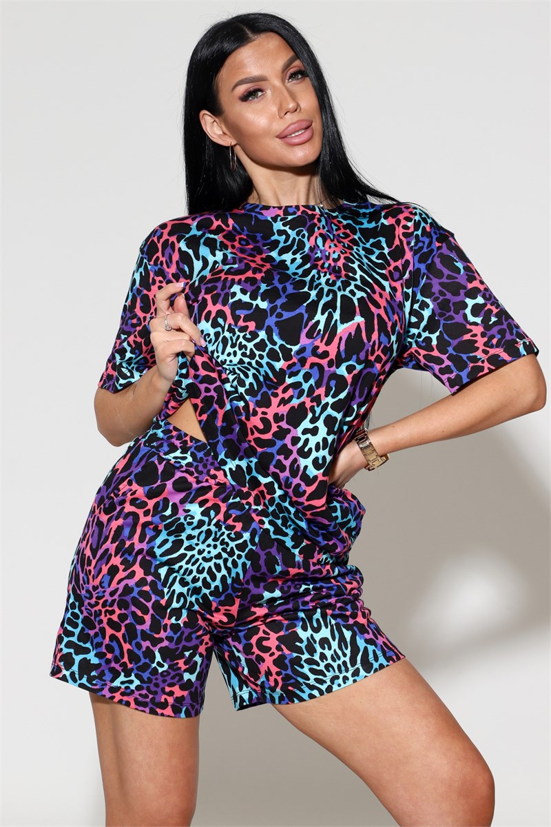 Дизайн костюма включает в себя абстракцию леопарда, что придает ему стильный и модный вид. Комбинация оттенков фиолетового создает яркий и свежий образ, который подчеркнет ваш индивидуальный стиль.