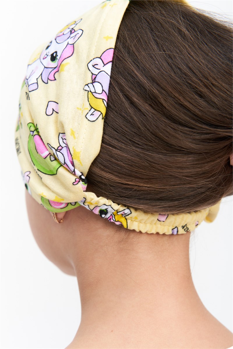 Стильная, яркая косынка для девочек. Встроенная резинка в изделия позволяет косынке прочно держаться на голове. Незаменима в жаркие летние дни.