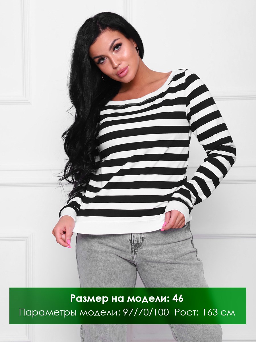 Повседневная женская кофта в полоску или тельняшка женская от российского бренда Iren Renetti станет ХИТОМ в твоем гардеробе! Стильный лонгслив (джемпер) с вырезом-лодочкой и длинным рукавом прекрасно впишется в ваш гардероб и станет базовой вещью на праздник, работу или отдых. Универсальный крой, сдержанный вырез горловины и полосатый принт подойдет для деловой женщины, юной девушки. Яркие полосы в тренде, ты знала? Удобную модель по размеру найдет для себя представительница от 42 до 52 размера. Лонгслив представлен в больших размерах и подойдет для беременных, кормящих мам или полных девушек. Если Вы являетесь любительницей oversize (оверсайз), то рекомендуем приобрести свободный джемпер на 1-2 размера больше, а если хотите достичь обтягивающего эффекта, то на 1 размер меньше Вашего. Широкая черно-белая полоса создаст визуальный стройнящий эффект, подчеркнет пропорции. Горизонтальные линии подойдут к любому гардеробу и элементам одежды! Кофточка отлично сочетается с любым предметом женского гардероба. Нарядная женская одежда подходит для строгого образа, как офисная блузка, новогоднего праздничного образа или школьного образа. Натуральный облегченный состав ткани позволит вам чувствовать себя комфортно даже на спортивной тренировке. Хлопок и дышащая ткань пропускают воздух и не создают испарину. Состав материала - 80% хлопок, 20% полиэстер а это гарантия комфорта и удобства на весь день. Для девушек с большим бюстом декольте-лодочка придаст еще большей сексуальности и шарма! При желании можно носить с открытыми плечами. Джемпер может быть представлен как одежда для дома и стань заменой следующим изделиям: кофта, толстовка, свитшот, короткий кроп-топ, в нем приятно находиться даже в теплую погоду, поскольку лекало выполнено в спортивном стиле с открытым горлом. Домашняя легкая одежда еще никогда не была такой стильной! Эта теплая кофточка просто обязана стать частью Вашего имиджа!