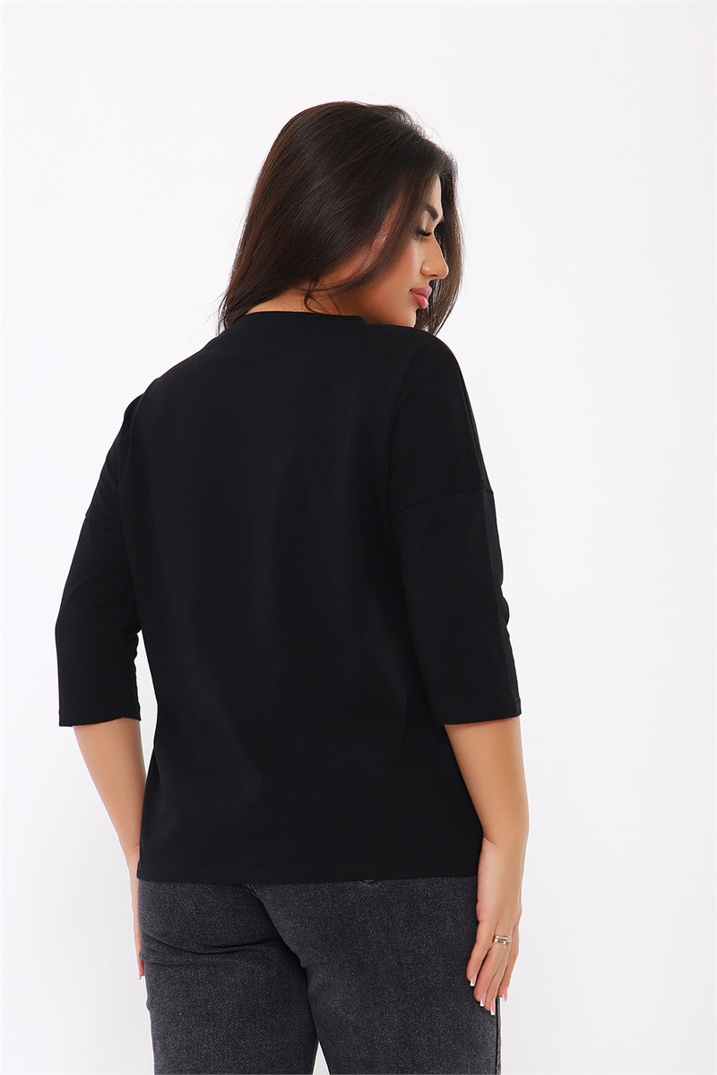 Стильный, женский лонгслив - футболка с рукавом 3/4, изготовлена из гладкого трикотажного полотна с оригинальным принтом, разнообразит ваш ежедневный образ. Футболка будет хорошим дополнением к джинсам, брюкам. Рукав 3/4 очень актуален в любую погоду!