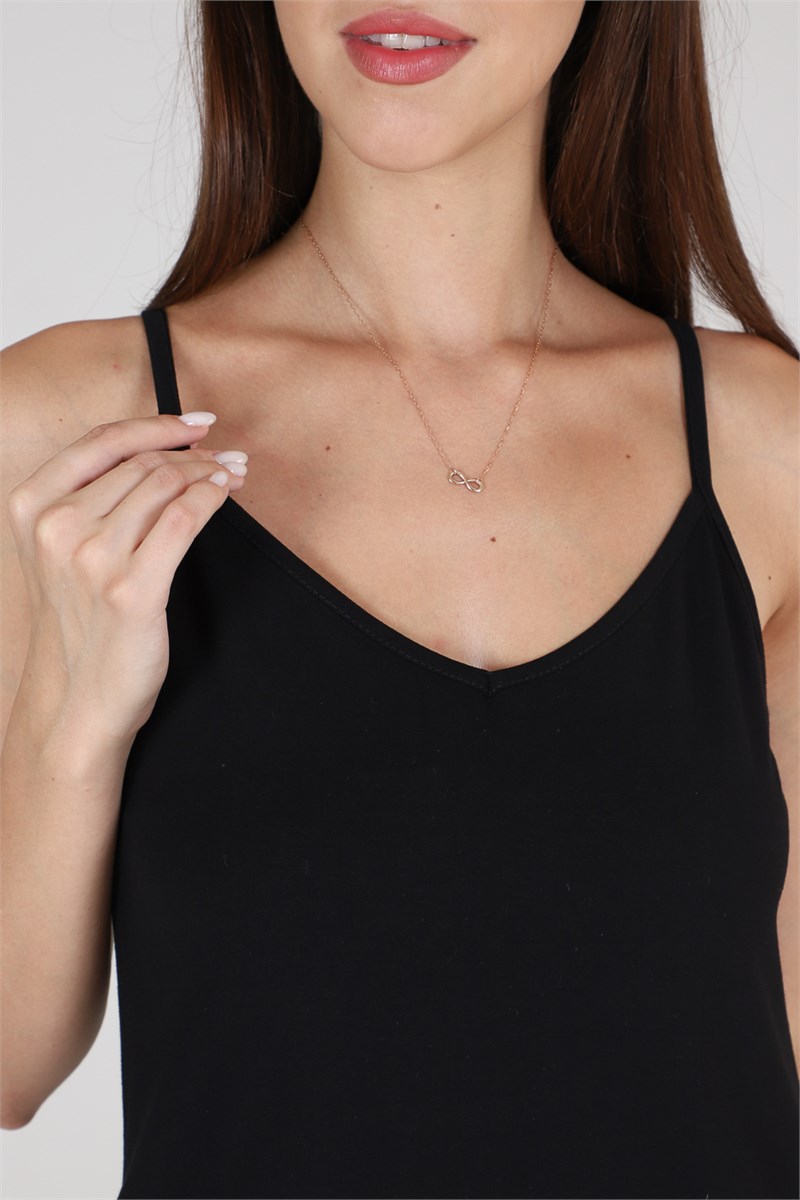 Майка на тонких бретелях, с V-образной горловиной на полочке и спинке. На спинке обработан декоративный вырез со шнуровкой.