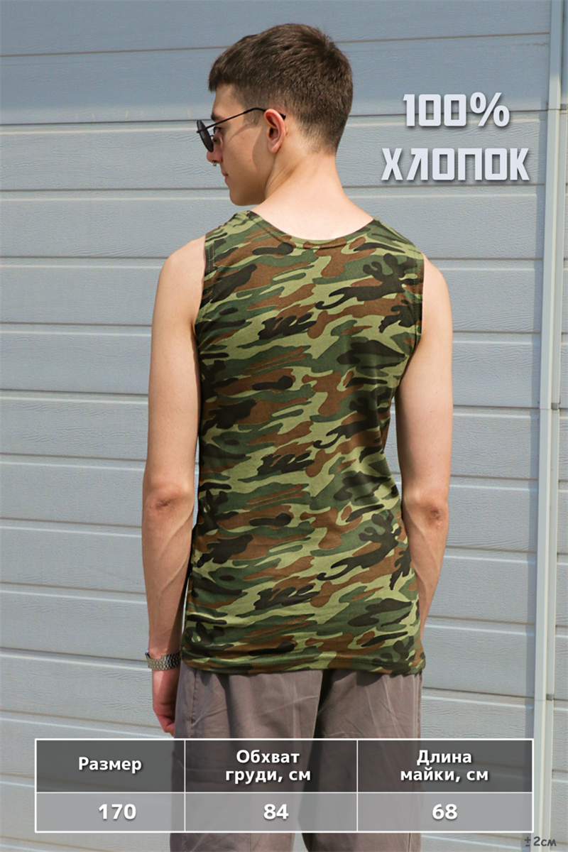 Подростковая камуфляжная майка - это отличный выбор для любителей активного отдыха и приключений. Она выполнена из натурального хлопка, что обеспечивает комфорт и легкость в носке. Размер 170 подойдет для подростков от 14 до 18 лет. Камуфляжный принт придает этой майке стильный и современный вид, который не оставит равнодушным ни одного подростка. Она прекрасно сочетается с джинсами или спортивными брюками, а так же может быть использована в качестве элемента школьной формы.