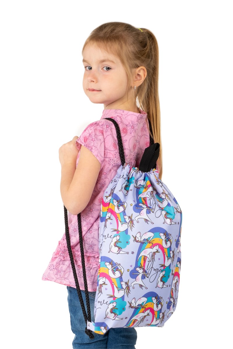 Мешок для обуви. Прекрасно подходит как мешок для игрушек в детский сад, как мешок для обуви и формы в спортивные секции (например, в гимнастику), как мешок для сменной обуви для младших классов и только для легкой обуви, как мешок-рюкзак на отдыхе для нужных мелочей. Вместимость: пара летней или осенней сменной обуви / игрушки / спортивная форма и обувь для детей до 110см ростом / форма для йоги или пилатеса / небольшие вещи для пляжа. Мешок-рюкзак из принтованной, плотной (115гр/м2) и водоотталкивающей ткани (оксфорд), размер 30х40см. Затягивается на толстые шнуры-ручки. Внутри есть небольшой карман на молнии для важных мелочей, для удобства сверху пришита ручка-петля из стропы, чтобы было удобно вешать на крючок или нести в руке. Мешок трудно испачкать, загрязнение достаточно протереть влажной тканью, но если все же удалось загрязнить, то мешок прекрасно выдерживает стирку