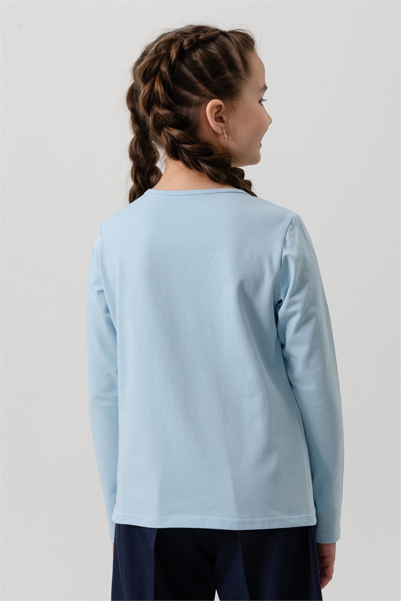 Блузка школьная для девочки с трикотажными длинными рукавами, круглым вырезом горловины, без застежки, прилегающего силуэта, на деталь переда настрочена кружевная кокетка, спереди на кружево сбоку прикреплен декоративный элемент. Сшита из однотонного мягкого хлопкового трикотажного материала с добавлением в состав хлопка 92% и лайкры 8 %. Школьная форма украсит и дополнит любой образ не только в школу, но и для повседневной носки, на день рождения, фотосессию и для особых случаев. Блузка отлично сидит по фигуре, движения в нем комфортные, позволяет выглядеть ребенку изящно. Отлично сохраняют цвет и форму при активной носке и после многократных стирок. Используемый материал блузки мягкий и приятный телу, устойчив к износу, не садится, не образует катышек на поверхности, имеет эффектный внешний вид.