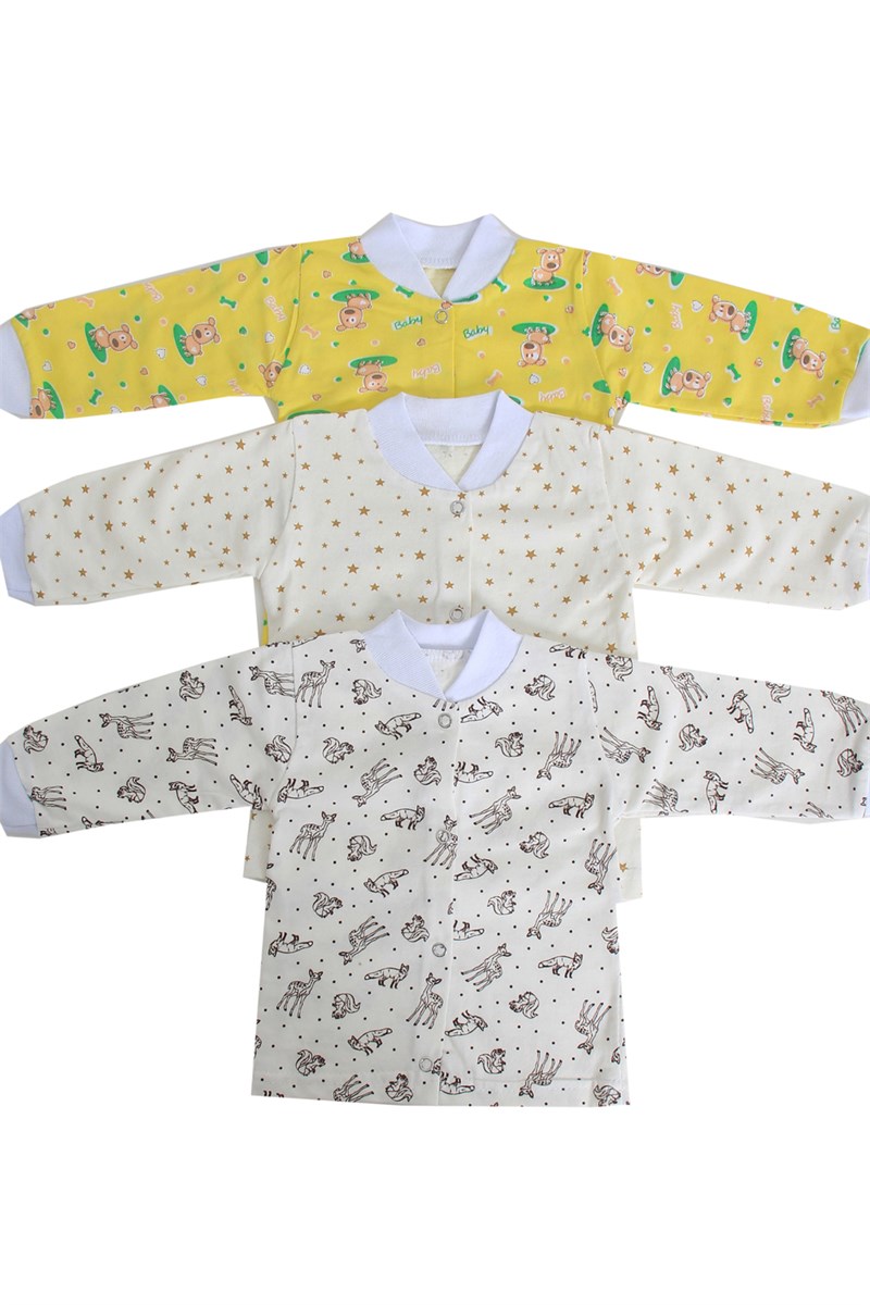 Комплект кофточек для малышей с длинным рукавом и яркой расцветкой -это отличный набор для выписку. Кофточки для новорожденных на кнопках изготовленных из 100 % хлопка. Одежда для новорожденных младенцев высокого качества, ткань мягкая и нежная. Удобные и практичные кофты для малышей свободного кроя, не сковывают движения и предназначены для повседневной носки. Эти детские распашонки-кофточки из мягкого трикотажа подойдут как для девочек, так и для мальчиков. Веселые расцветки позволяют легко комбинировать их с другой одеждой. Особенностью модели является долгая эксплуатация, которая выдержит множество стирок и ежедневное использование, благодаря этому материал отлично сохраняет изначальную форму, ткань не линяет и не выцветает. Нейтральные расцветки подойду как для мальчика, так и для девочки. В упаковке 3 шт. кофточек для детей разных цветов одного размера. Распашонки для новорожденных - идеальная одежда для первого гардероба малыша.