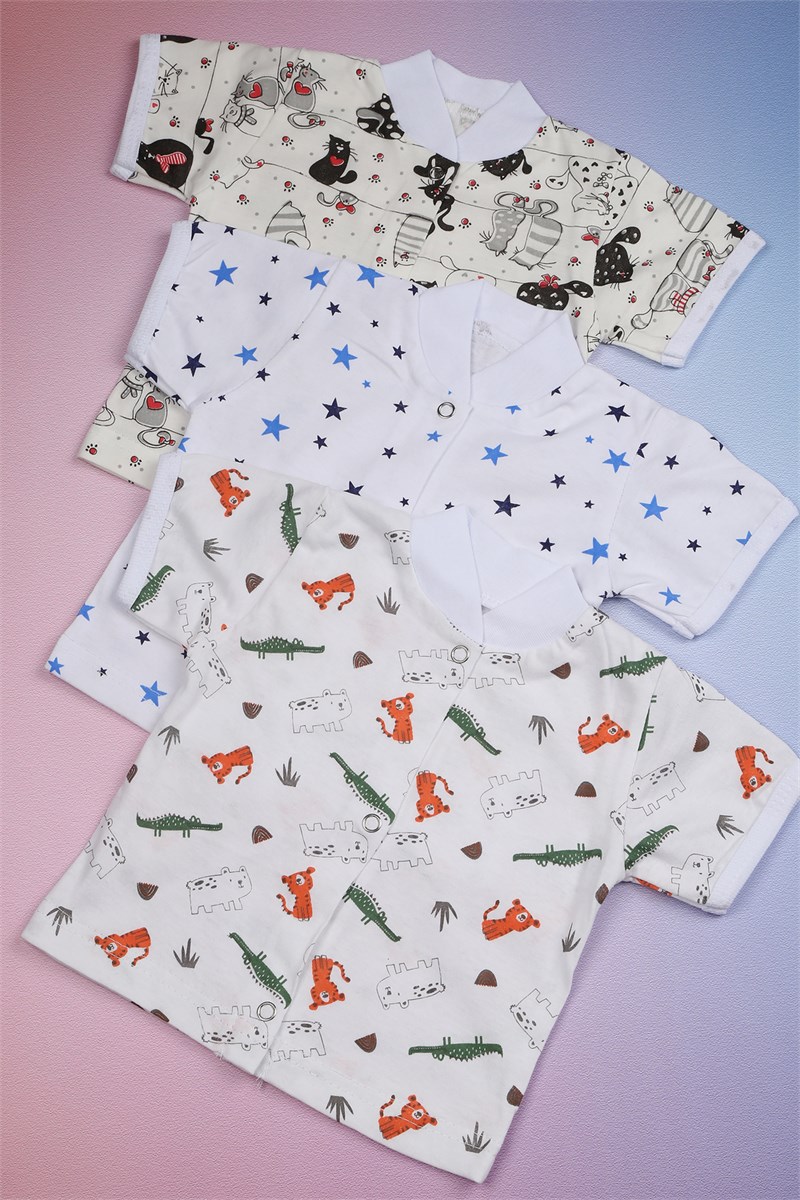 Комплект кофточек для малышей с коротким рукавом и разнообразной расцветкой -это отличный набор для выписку. Кофточки для новорожденных на кнопках изготовленных из 100 % хлопка. Одежда для новорожденных младенцев высокого качества, ткань мягкая и нежная. Удобные и практичные кофты для малышей свободного кроя, не сковывают движения и предназначены для повседневной носки. Эти детские распашонки-кофточки из мягкого трикотажа подойдут как для девочек, так и для мальчиков. Веселые расцветки позволяют легко комбинировать их с другой одеждой. Особенностью модели является долгая эксплуатация, которая выдержит множество стирок и ежедневное использование, благодаря этому материал отлично сохраняет изначальную форму, ткань не линяет и не выцветает. Нейтральные расцветки подойду как для мальчика, так и для девочки. В упаковке 3 шт. кофточек для детей разных цветов одного размера. Распашонки для новорожденных - идеальная одежда для первого гардероба малыша.