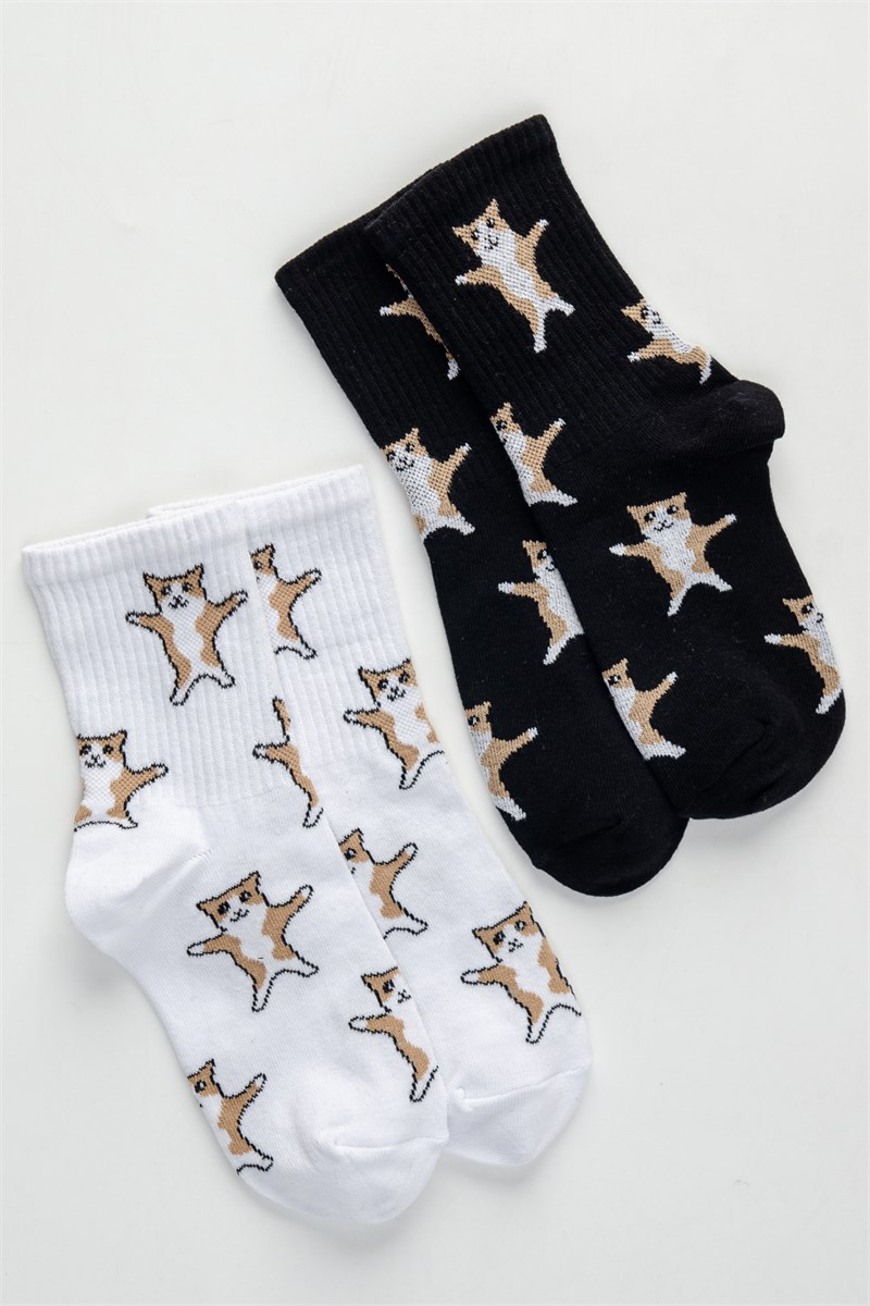 Отличные носки для детей, комплект 2 пары. По всему носочку узоры из танцующий котиков.