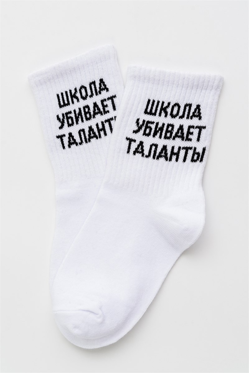 Комплект носков для детей. Широкая резинка, надпись Школа убивает таланты В комплекте 2 пары.