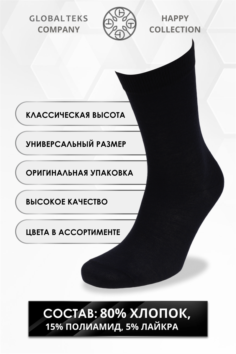 Внутри банки носки мужские 1 пара, состав 80% хлопок, 15% полиамид, 5% лайкра, универсального размера 41-46. Использование высококачественного материала позволяет коже дышать, а добавление небольшого количества синтетических нитей делает носки долговечней.