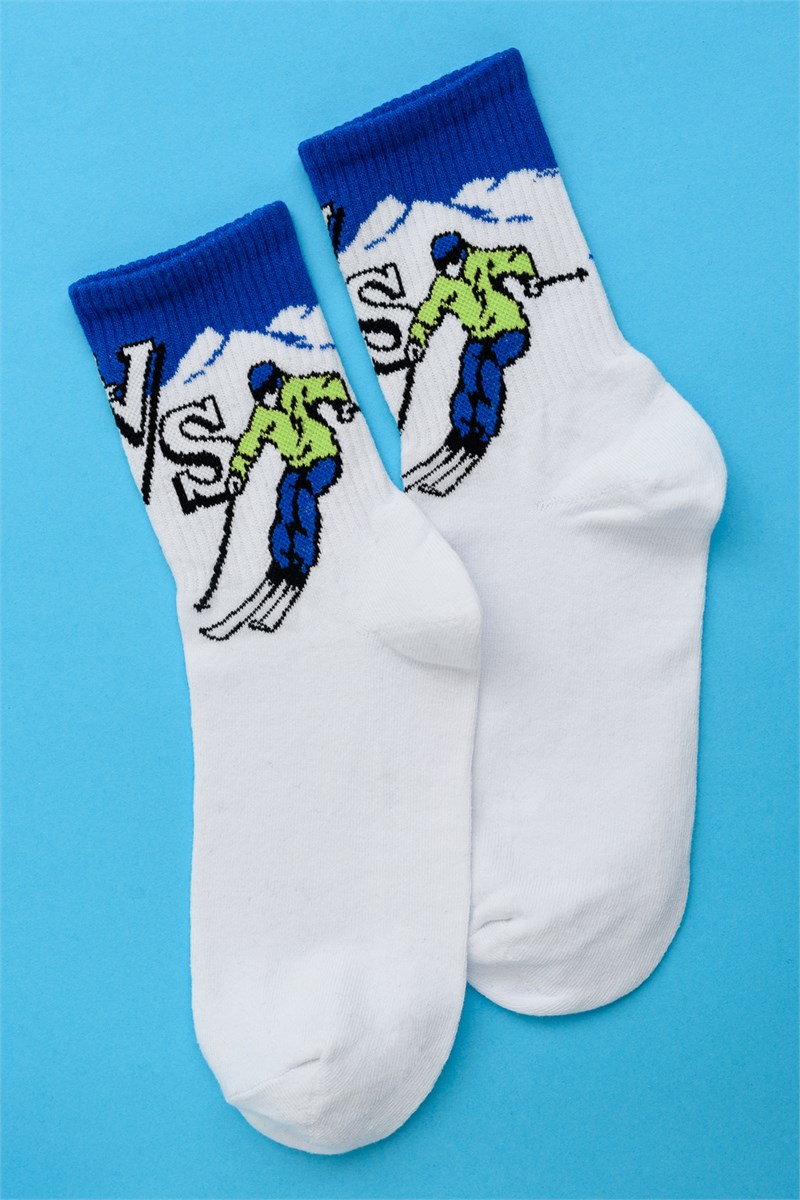Комплект мужских носков 1 пара. На верхней части носка изображение сноубордиста.