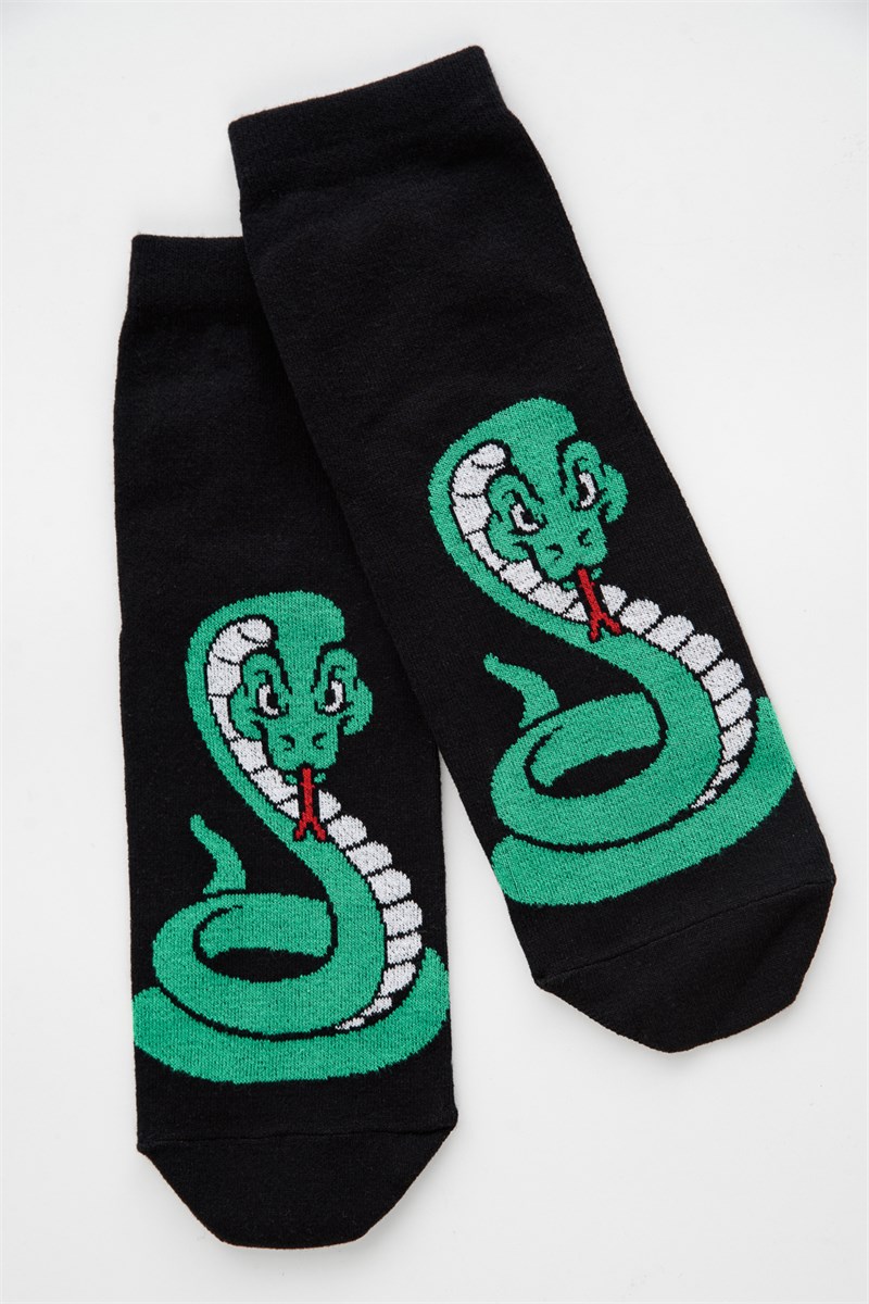 Оригинальные мужские новогодние носки. В комплекте 1 пара. На основной части носка изображение символа будущего года Змеи.