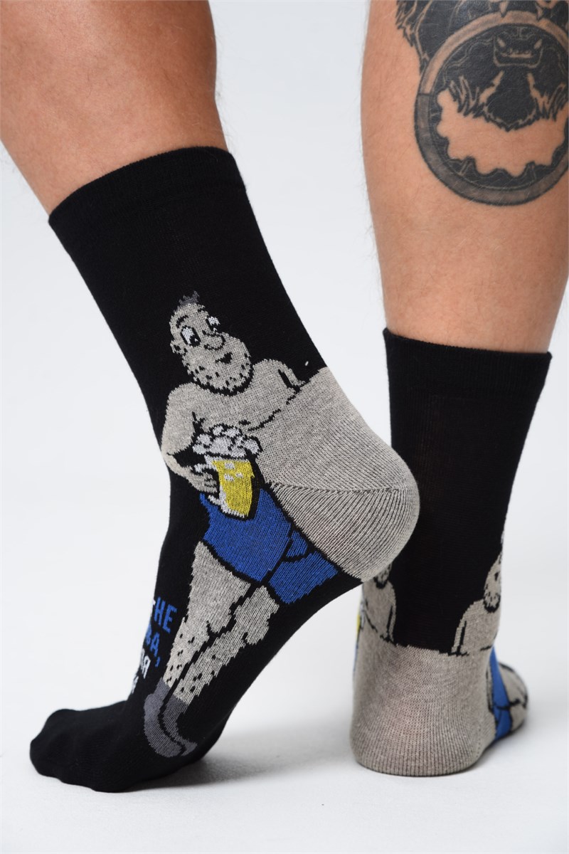 Оригинальные мужские носки отличный подарок мужчине. На задней части и на пятке изображение, на мыске надпись. Комплект 1 пара.