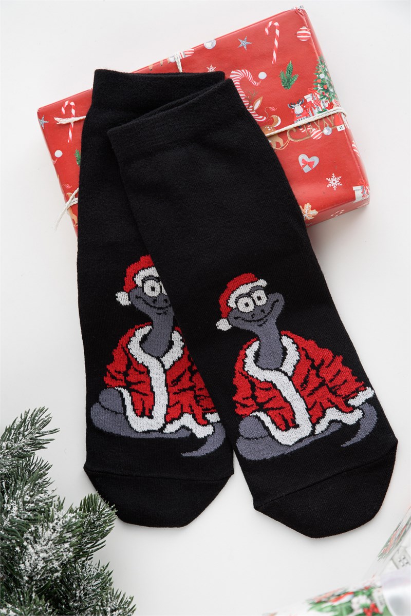 Оригинальные мужские новогодние носки. В комплекте 1 пара. На основной части носка изображение символа будущего года Змеи.