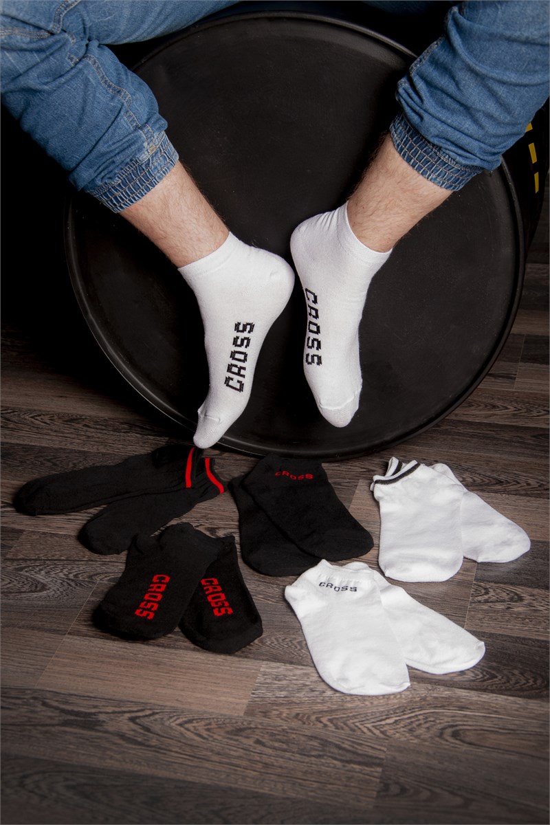 Набор укороченных мужских носков в спортивном стиле. В упаковке 6 пар - по 1 паре каждой расцветки
