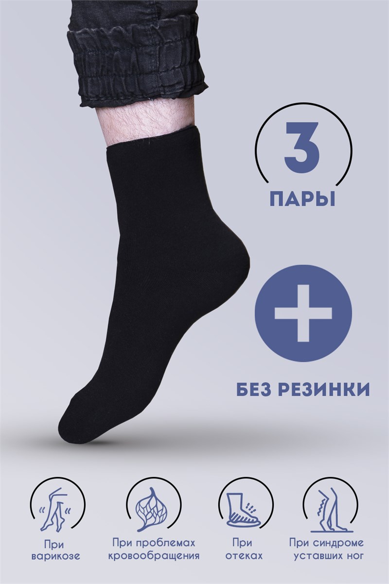 Набор мужских плюшевых носков без резинки. Обеспечивают комфорт при носке - не перетягивают сосуды и не затрудняют отток крови, что очень важно при поражении вен и нервных окончаний. В упаковке 3 пары. В продаже имеются аналогичные женские носки Уют