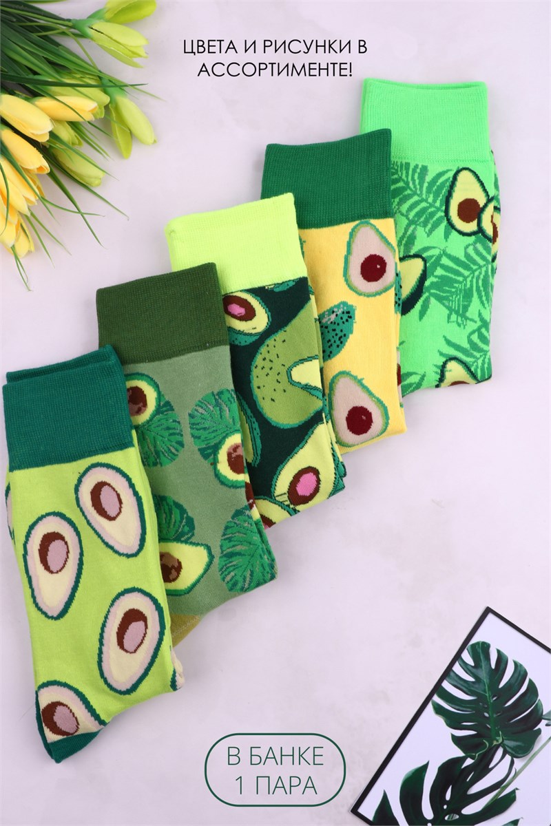 На банке изображён мультяшный авокадик, который сразу привлекает внимание. Носки высокие, что обеспечивает комфорт и тепло. На них также изображены авокадо и папоротник, создавая яркий и запоминающийся образ. Носки имеют мягкую резинку, которая не сдавливает ногу. Это особенно важно для тех, кто проводит много времени на ногах или занимается спортом. Носки подходят для размера ноги от 36 до 41. Это делает их доступными для большинства женщин. Носки изготовлены из высококачественных материалов. Состав включает 80% хлопка, 15% полиамида и 5% эластана. Хлопок обеспечивает мягкость и воздухопроницаемость, полиамид прочность и эластичность, а эластан идеальную посадку на ноге. Не упустите возможность приобрести эти стильные и удобные носки! Они станут отличным подарком для себя или близких.