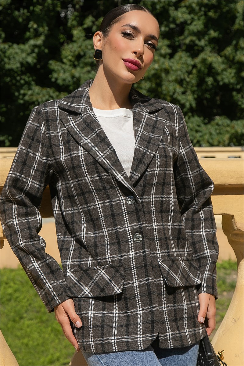 Стильный пиджак прямого кроя в классическую клетку — идеальный выбор для создания элегантного и современного образа. Выполненный из качественных материалов, он обеспечивает комфорт и отличную посадку. Этот пиджак легко комбинируется с различными элементами гардероба — от деловых брюк до джинсов, добавляя вашему стилю уверенности и утончённости. Отличный вариант как для офиса, так и для повседневных выходов!