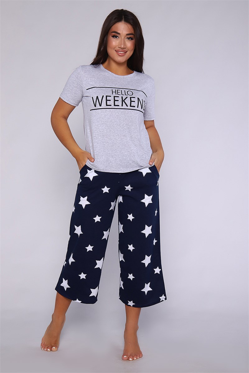 Классная футболка с печатью. Кюлоты с карманами, притачной пояс.
