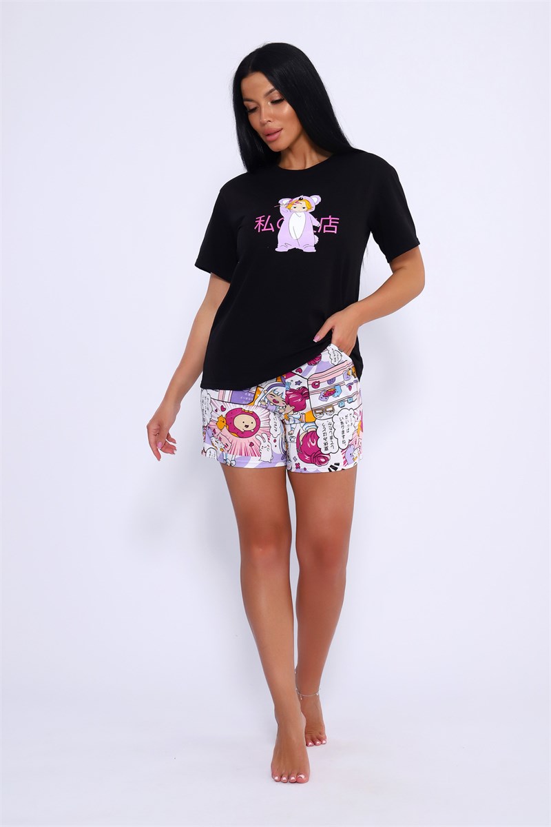 Пижама с шортами, отличный вариант для проведения домашнего досуга. Модель состоит из трикотажного полотна кулирки (100% хлопок). Изделие очень приятное к телу, а благодаря крою совсем не сковывает движения.