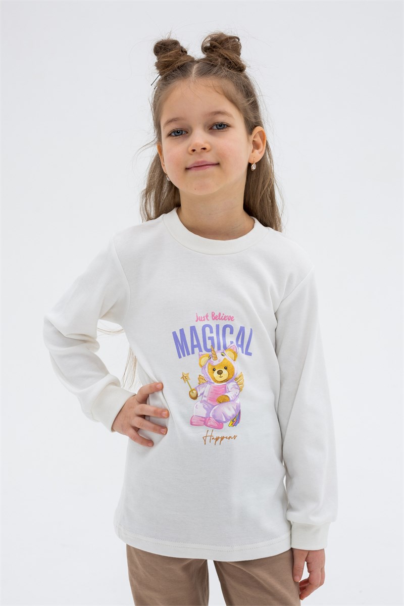 Пижама интерлок Магия предназначена для девочек, выполнена из интерлока (100% хлопок) ..Принт на джемпере, нанесённый методом шелкографии. Материал средней плотности, нежный и эластичный, пропускает воздух и сохраняет тепло. Джемпер с длинным рукавом , штанишки на манжете. Для сохранения первоначальных свойств изделия, очень важно соблюдать рекомендации по уходу за изделием, указанные на этикетке. Продукция сертифицирована.