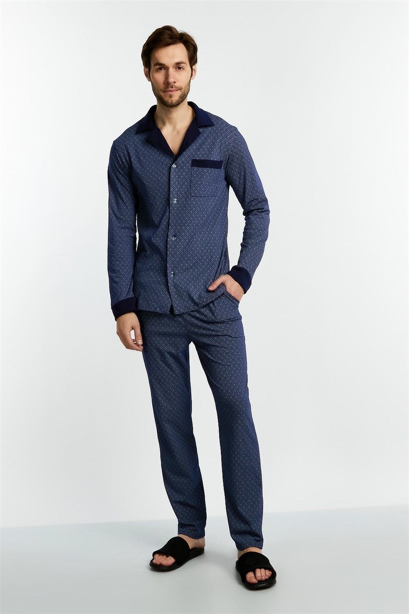 Пижама мужская с брюками - незаменимая вещь в гардеробе каждого мужчины. Однотонная пижама с отложным воротником, застежкой на пуговицы, стильной окантовкой - одна из самых трендовых позиций этого года. Пижамный костюм оверсайз станет отличным подарком на любое торжество для любого мужчины.
