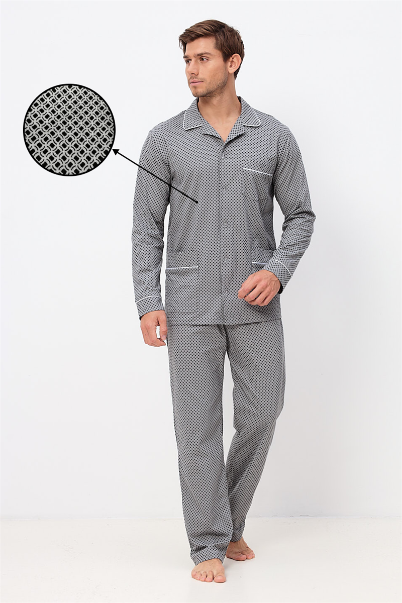 Классическая пижама мужская от бренда Lika Dress - идеальный вариант для отдыха дома. Пижама для мужчин состоит из пижамной рубашки на пуговицах, с карманом на груди и по бокам, а также удобных и мягких брюк в тон. Наша мужская пижама имеет стильный мужской принт. Мужская пижама с длинным рукавом сшита из нежного и качественного трикотажа - кулирки. Это чистый хлопок, поэтому ткань дышит, не электризуется, не вызывает раздражения и прекрасно впитывает влагу. Красивая и удобная мужская пижама это отличная идея для подарка на любой повод, в любое время года.
