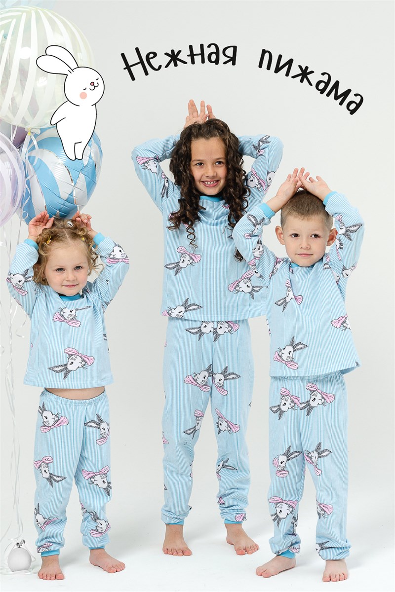 Пижама из 100% хлопка для девочек. Современная, приятная расцветка. Горловина футболки и рукава обработаны кантом. Длинный рукав.