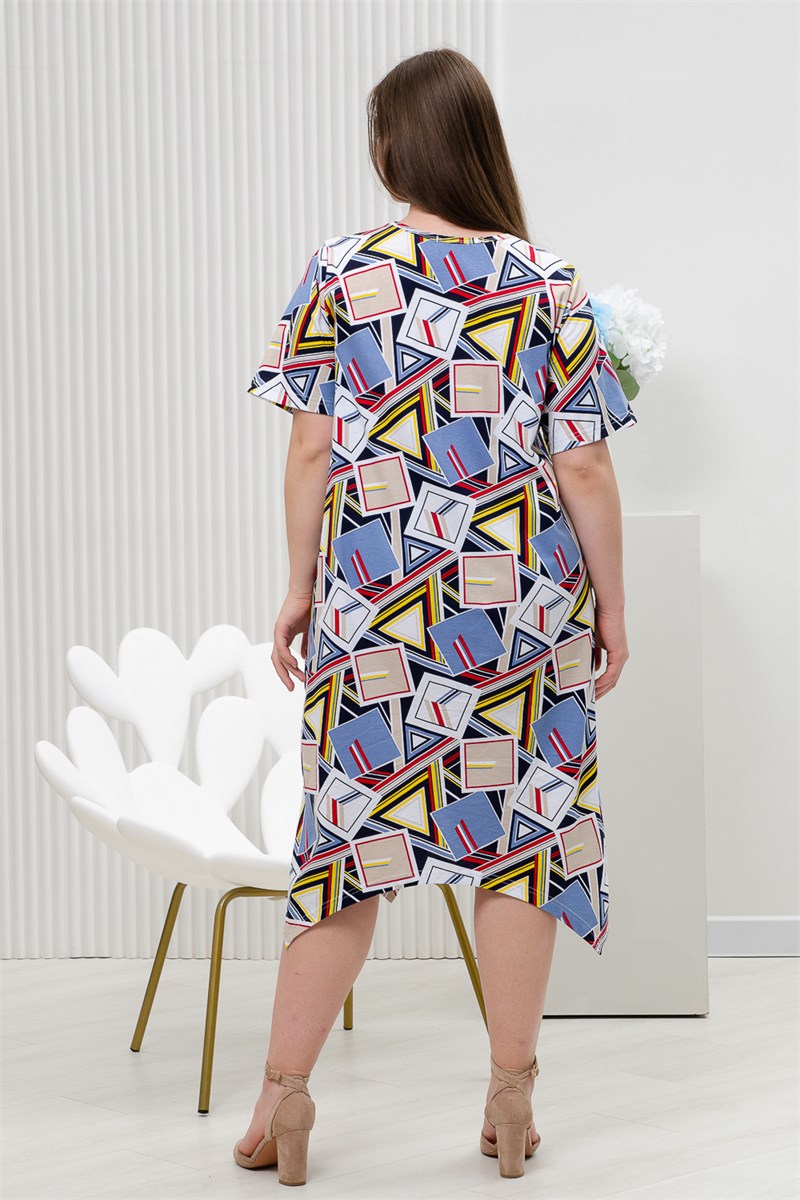 Платье женское имеет свободный крой, фигурный низ и короткий рукав. С принтом геометрия выполнена из 100% натурального хлопка. Свободный стиль подходит для любой женщины, ведь он может скрыть недостатки фигуры и подчеркнуть ее достоинства. Платье послужит прекрасным подарком для себя, коллеги и любимым дочке или сестре. Натуральный состав из 100% хлопка обеспечит вам комфорт и хорошее настроение. Данная модель платья отлично подойдет для прогулки, на пляж, море, повседневное, на каждый день, домашней одежды, станет платьем Вашего лета.