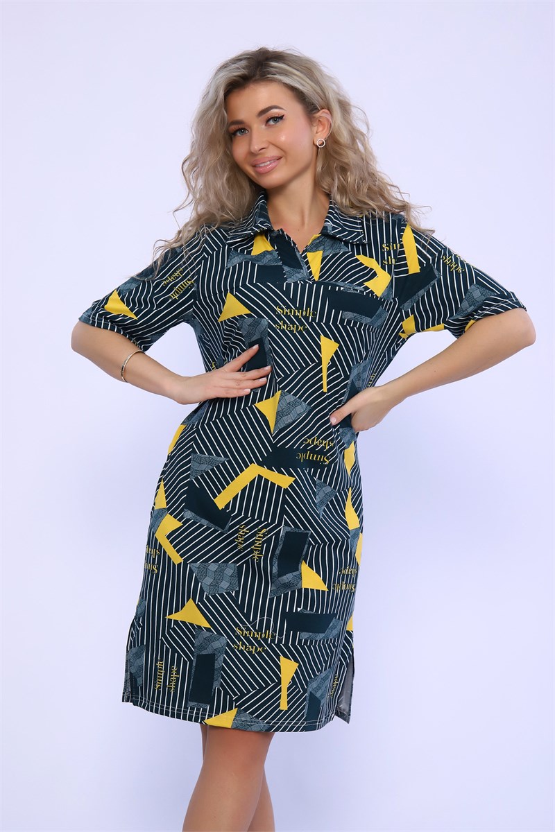 Платье с карманами и разрезами в боковых швах. Рукав короткий, рубашечный воротник. Идеальный повседневный вариант.