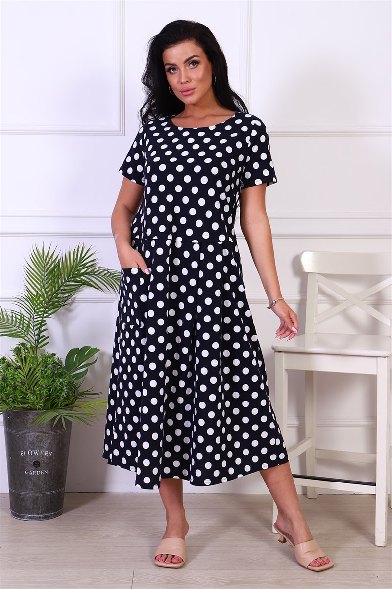 Свободное длинное платье отрезное по линии талии с планкой. Рукав втачной, короткий. Округлая горловина обработана на окантовку с отстрочкой. Юбка расклёшенная со складками и одним накладным карманом.