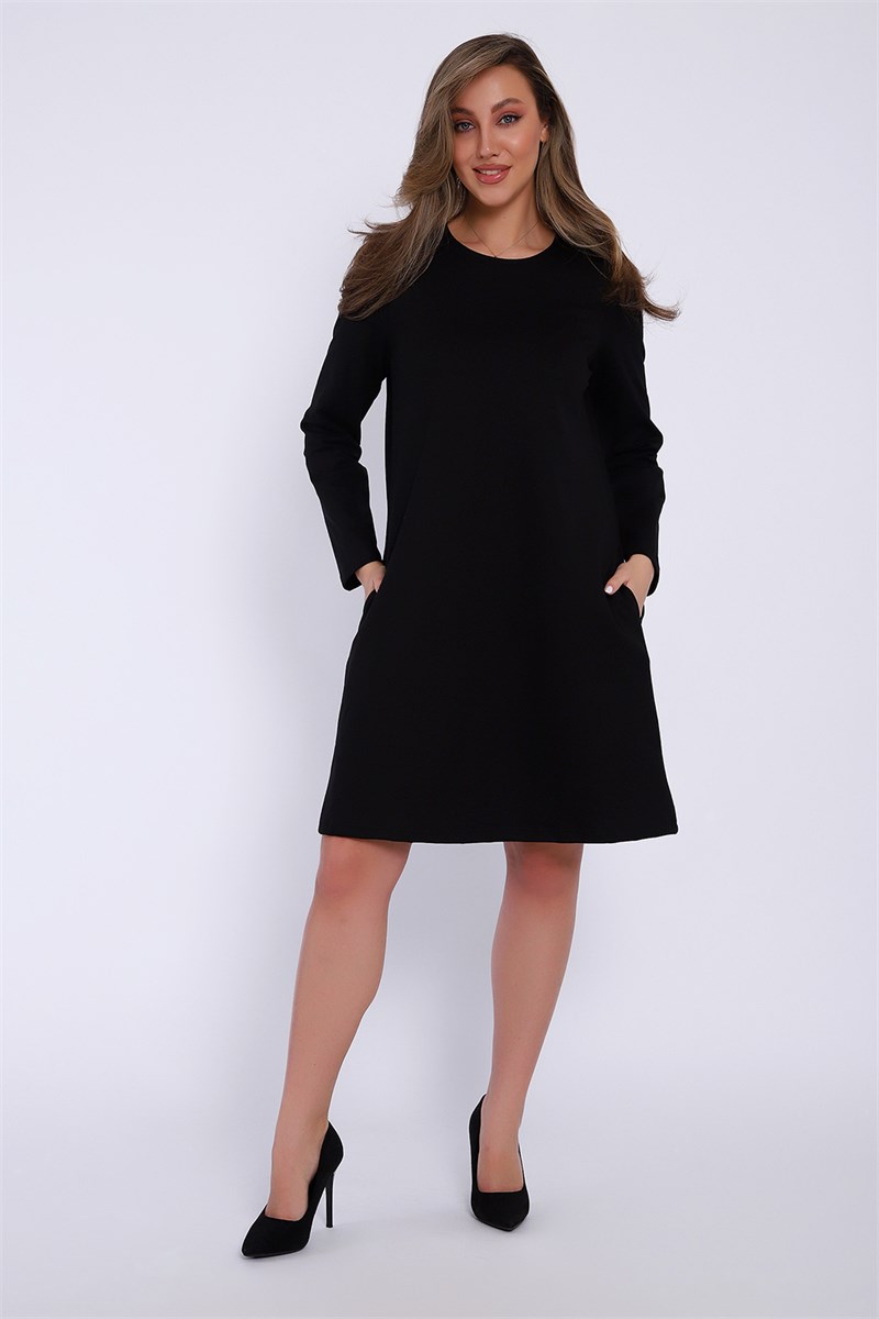 Комфортное женское платье расклешенного фасона с длинным рукавом и классической горловиной, имеются внутренние карманы. Универсальный вариант на все случаи жизни.