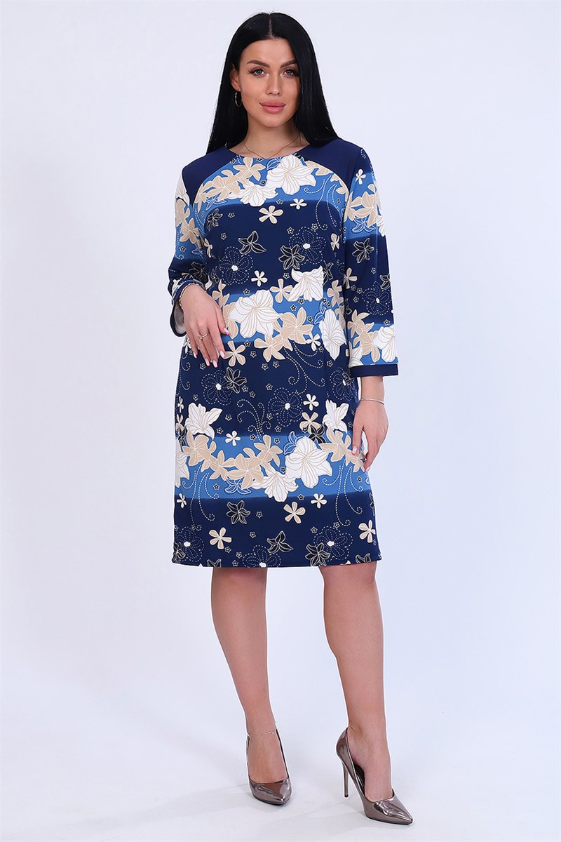 Платье женское прямого силуэта, округлый ворот, рукав 3/4 на манжете, на задней полочке разрез снизу. Застежка сзади на молнии. Легкое и удобное.