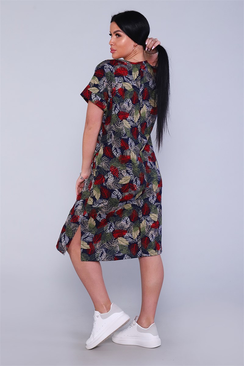 Платье полуприлегающего силуэта с манжетами на спущенном плече, боковыми карманами и разрезами в боковых швах.