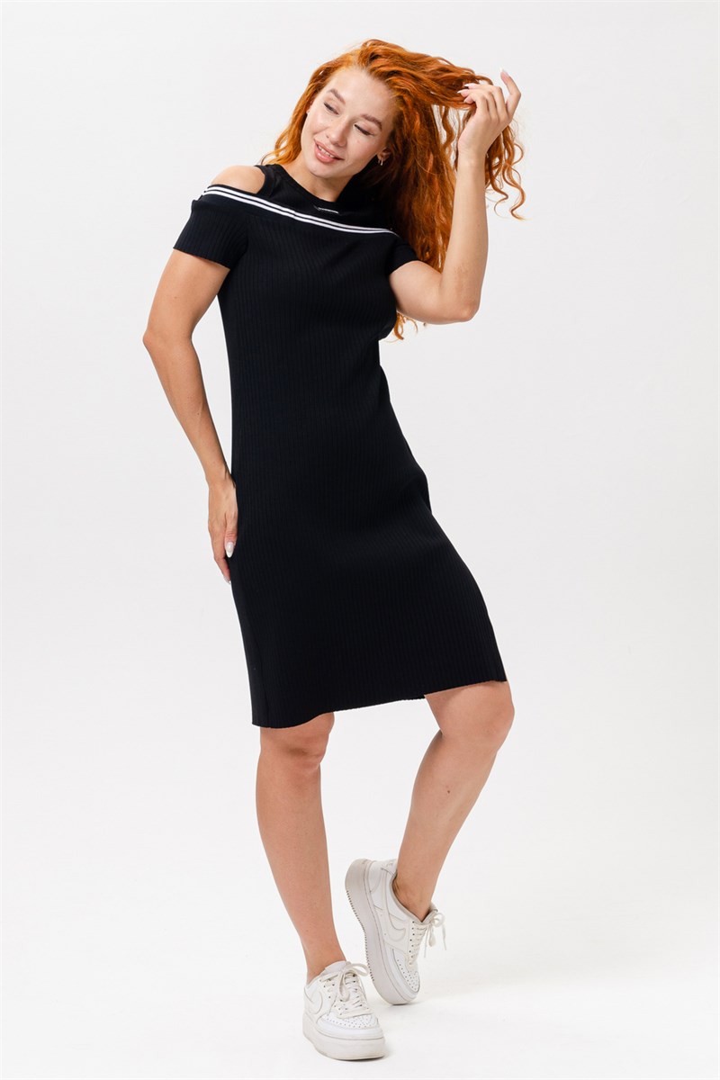 Женское платье из лапши полуприлегающего силуэта. Кокетливые вырезы для плеч делают платье особенным.